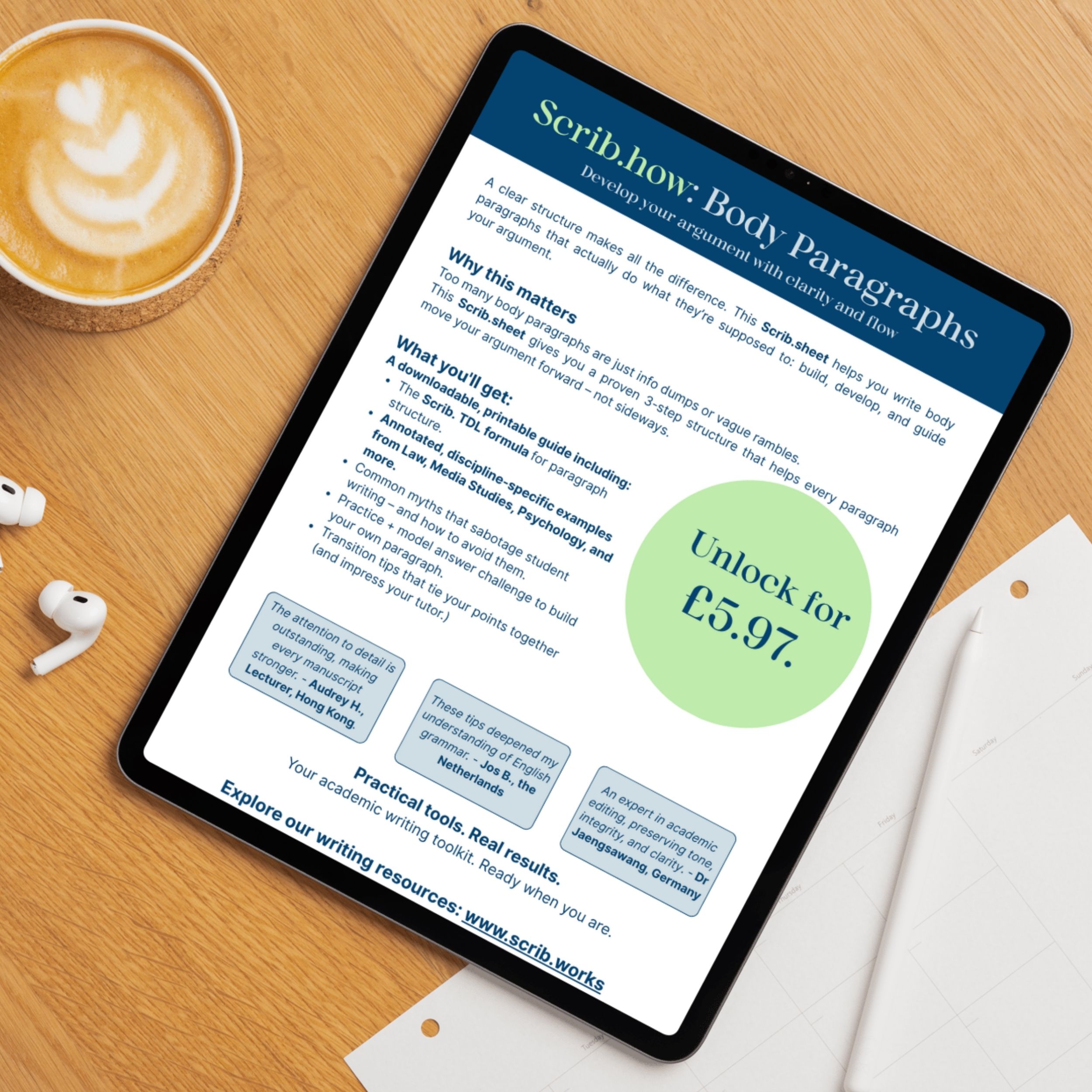 Even great ideas fall flat if your paragraphs wander or repeat. This Scrib.sheet shows you how to write body paragraphs that are focused, persuasive, and connected.